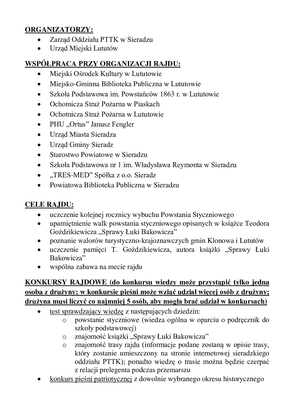 49. Rajd Powstańców 1863 r. „Śladami Łuki Bakowicza” AKTUALIZACJA!